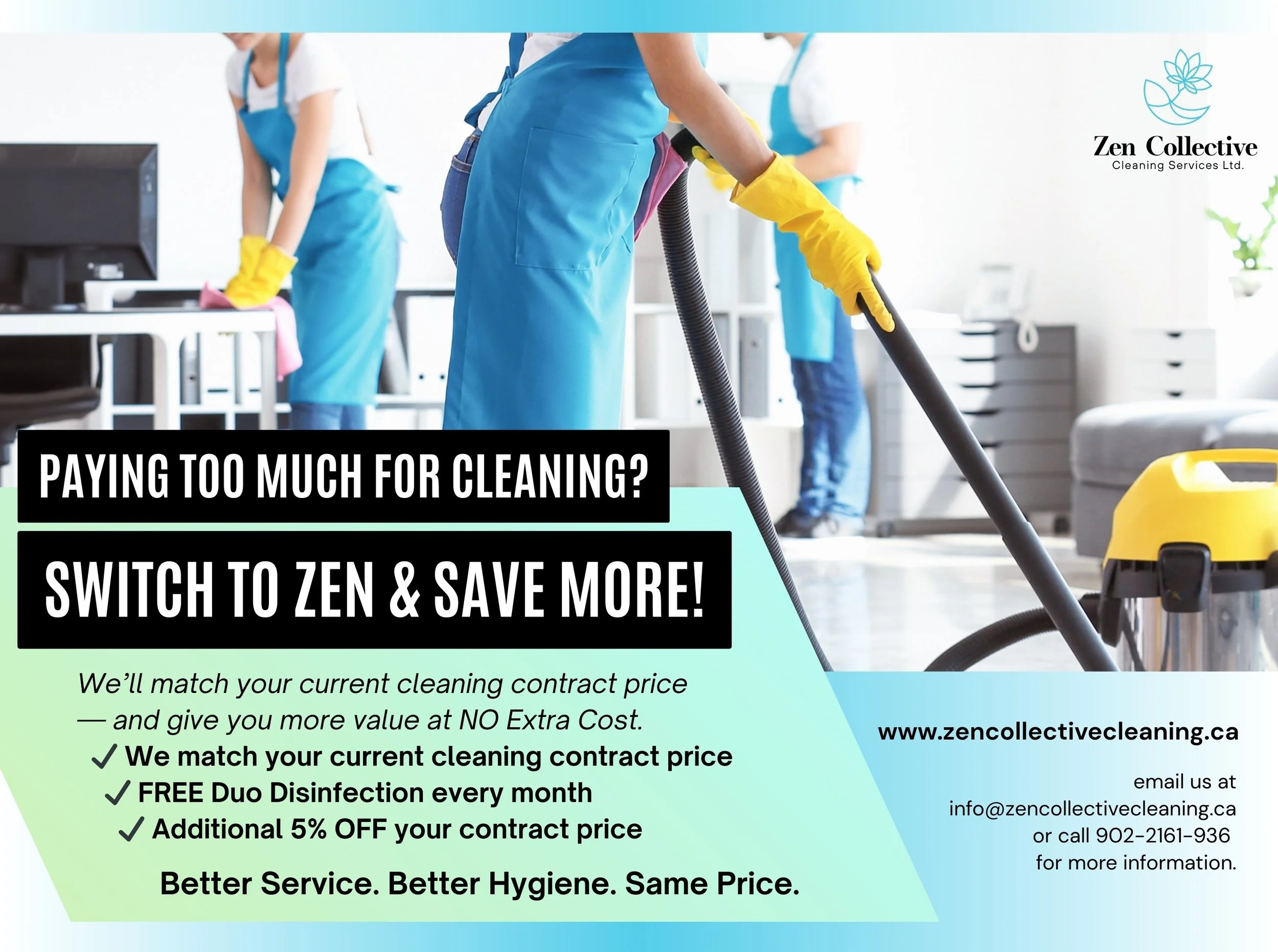 Contact us at 902-216-1936 or email info@zencollevtivecleaning.ca